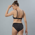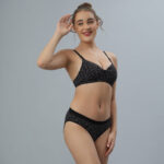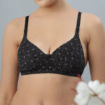 Stay stylish and comfortable with this black printed padded bra. Designed with soft fabric and lightly padded cups, it offers natural shaping and all-day comfort. The wire-free design and adjustable straps ensure a perfect fit, while the subtle bow detail adds a feminine touch.