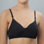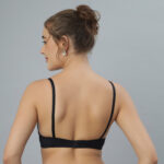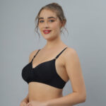 Elevate your essentials with this classic black padded bra, designed for both comfort and style. The smooth, breathable fabric ensures all-day ease, while the lightly padded cups provide natural shaping and a seamless finish under any outfit. Its wire-free design makes it perfect for everyday wear, and the adjustable straps allow a customized fit. A subtle bow at the center adds a touch of elegance to its timeless design.