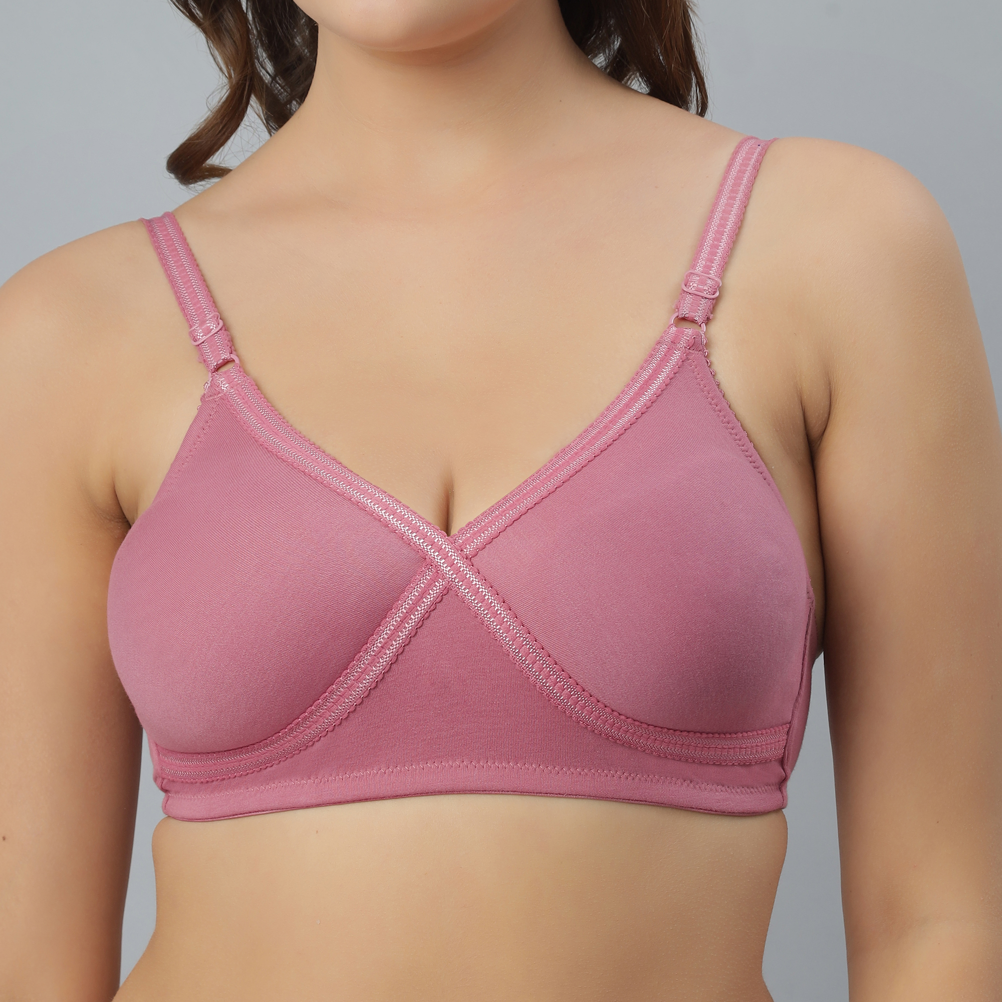 Women’s Crossover Cotton Non Padded Bra – Dusty Pink